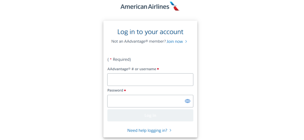 - AAdvantage® # or Username
