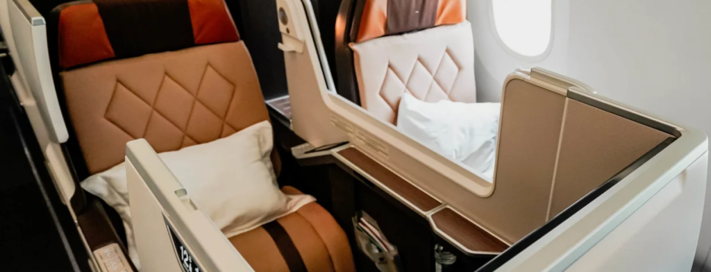 | Boeing 787-9 | Twenty chairs with a 1:2:1 four-abreast arrangement.180-degree flat bed.77.5-inch-long bed.22 inches is the seat width.Pitch of the seat: 82 inches.The seat bottom and backrest are electrically controlled.Leg rest powered by electricity.Adjustable seat pan depth by electricity.Armrest folding on the side. |