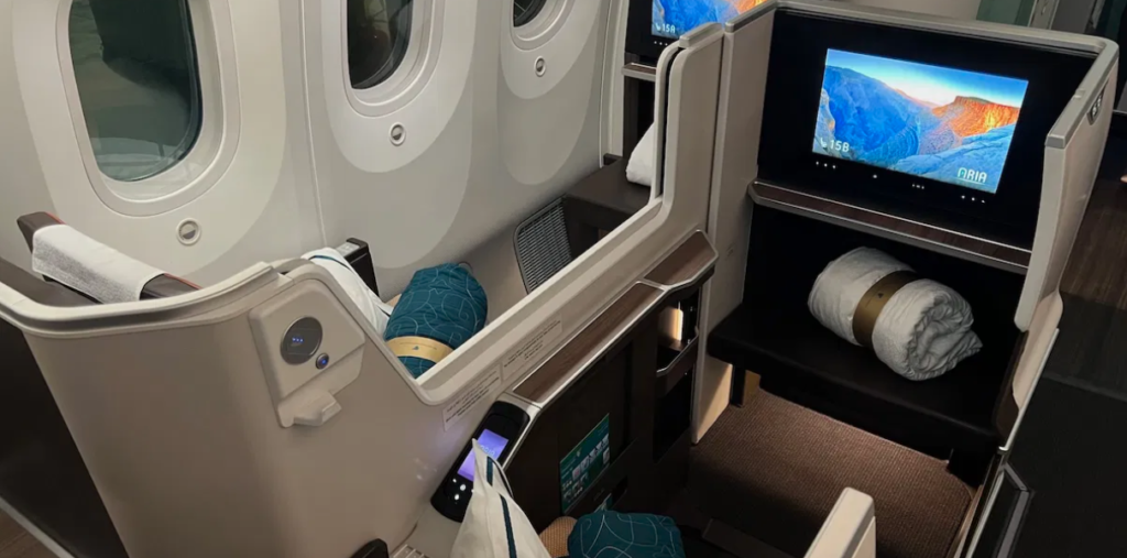 Flying from its major hub at Muscat International Airport (MCT) to important locations around the Middle East, Africa, Asia, and Europe, Oman Air Business Class suites are accessible on the air carrier’s vast international network. The majority of medium and long-distance routes run by widebody and some single-aisle aircraft provide this class of service.